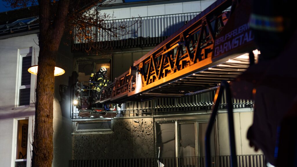 In Arheilgen stand die Fassade eines Gebäudes in Vollbrand, bestätigten Polizei und Feuerwehr. Vor Ausbruch des Feuers soll es Knallgeräusche gegeben haben, berichtet ein Anwohner. Die Polizei ermittelt zur Ursache.
