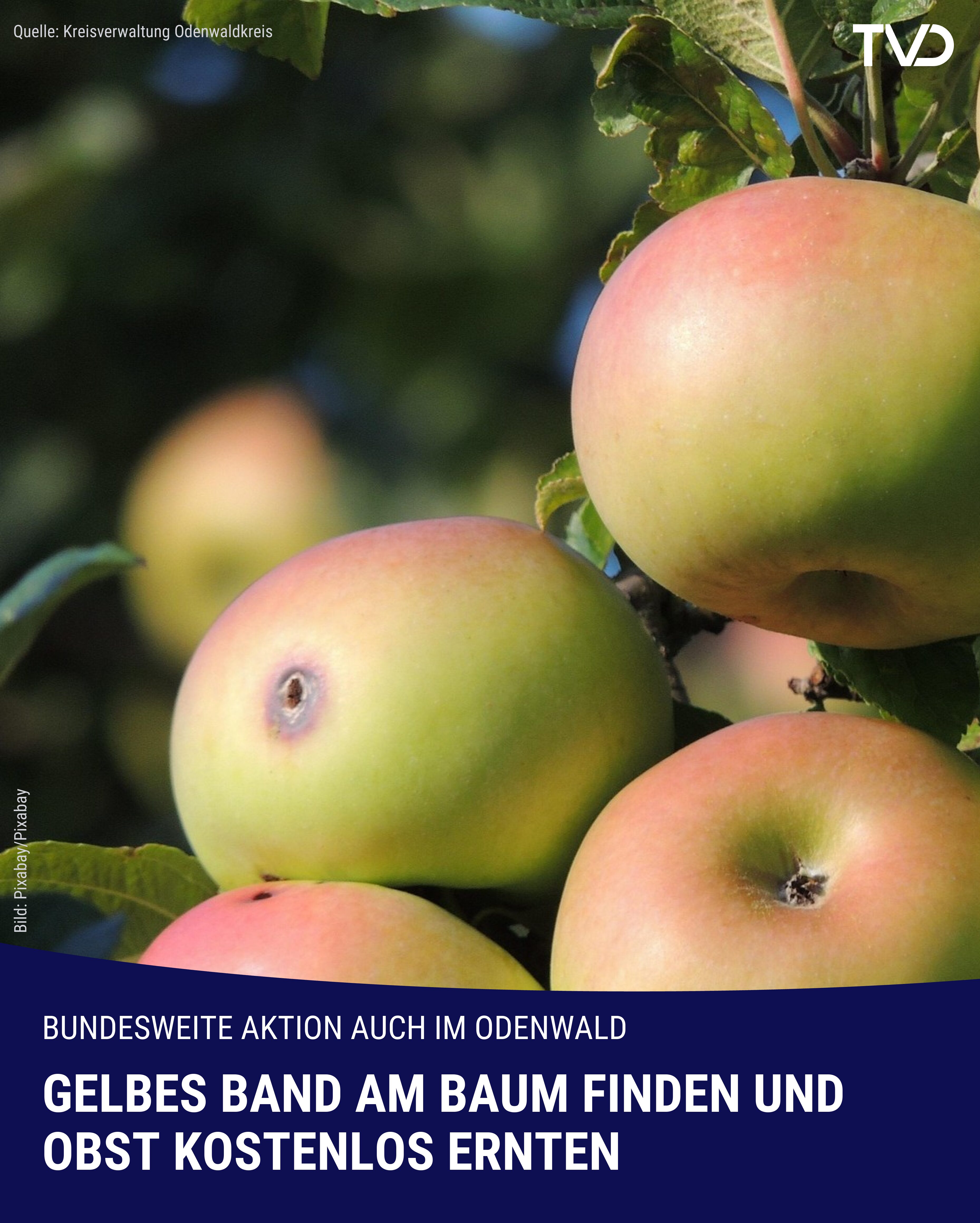 Gelbes Band an einem Baum finden und schon kann geerntet werden- so heißt das Motto, ab sofort wieder im Odenwaldkreis. Der Landkreis will mit der Aktion Bäume sichtbar machen, deren Obst oftmals hängen bleibt und verdirbt.