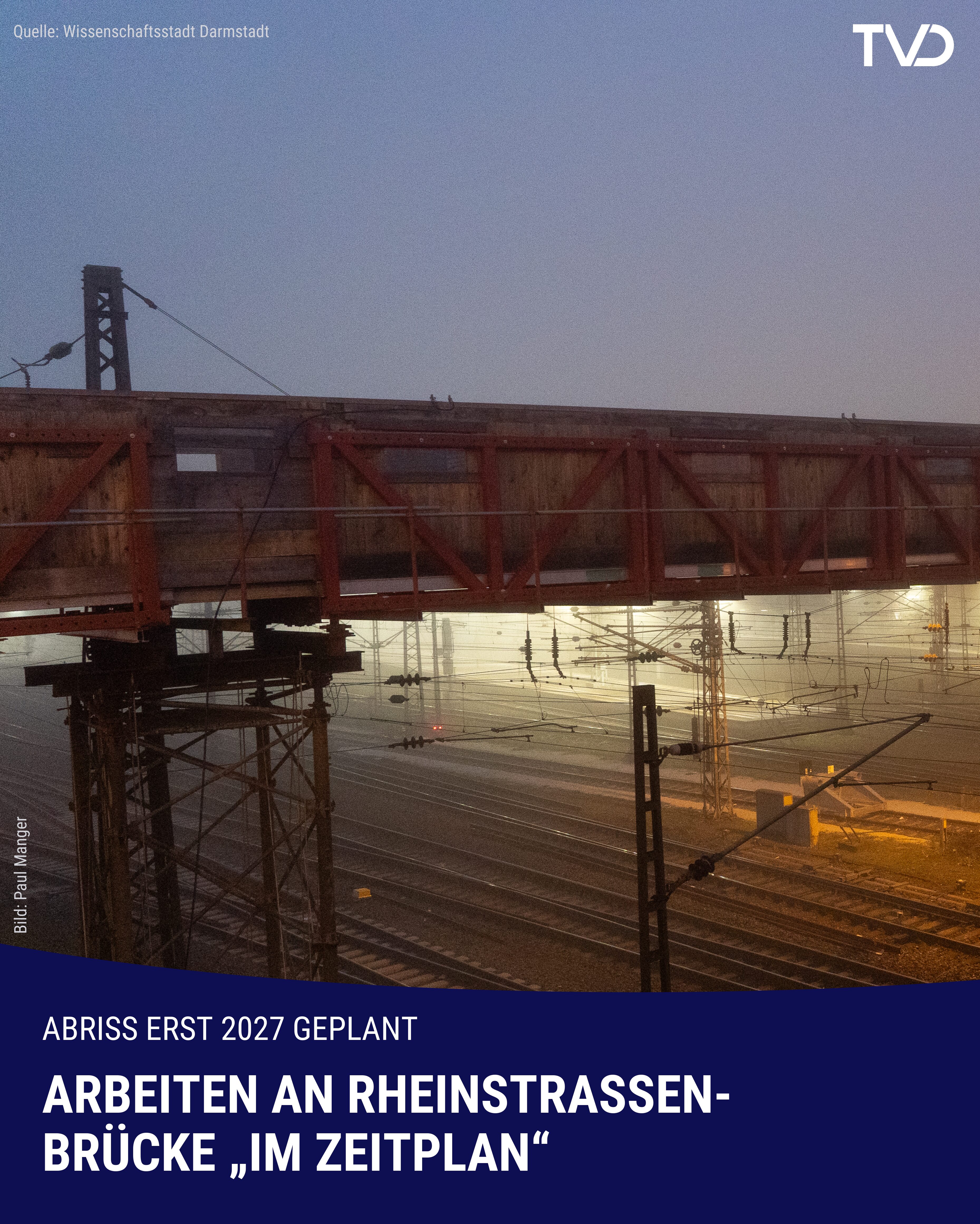 Der Abriss und vollständige Neubau der Rheinstraßenbrücke direkt am Hauptbahnhof kommen planmäßig voran. Das teilte die zuständige Darmstädter Stadtentwicklungsgesellschaft (DSE) mit. In ihrem aktuellen Quartalsbericht heißt es, der notwendige Änderungsantrag beim zuständigen Ministerium sei eingereicht worden.